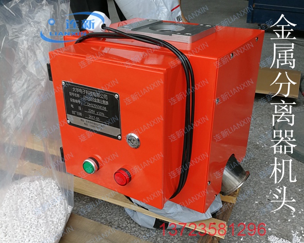 原料從料斗或送料器自由下落進入金屬分離器,如果沒有金屬雜質(zhì),原料會直接通過金屬分離器流向下端的出料口。如果檢測器檢測到原料中含有金屬,那么控制器立刻啟動分離板將金屬物和部分原料一起導向側(cè)面的排料口,然后分流板迅速恢復至正常的位置,分流板速度可調(diào),金屬分離器的檢測精度也可根據(jù)生產(chǎn)需要調(diào)節(jié),最小可檢測并分離出Φ 0.2mm的金屬顆粒。